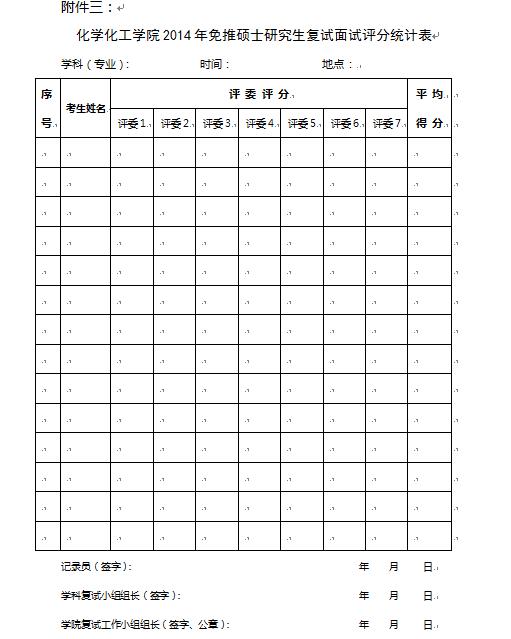 复试实行实名制现场打分,复试过程全程录像,以备查阅。推免工作中出现争议,由院推免工作领导小组会议通过表决方式处理,出席会议人数不得少于7人。