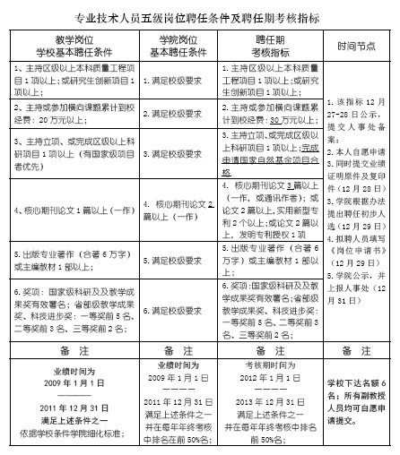 根据《污污漫画 2012-2013年专业技术人员五级岗位竞聘方案》的要求,结合学院实际及十二五规划,院聘任领导小组研究提出如下聘任条件及聘任期考核指标。见下表。