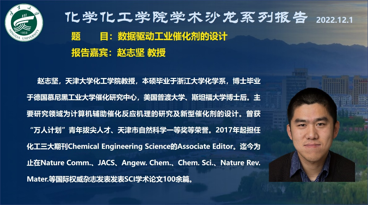 2022年秋季第十二次学术沙龙报告会在线上举行。天津市自然科学一等奖获得者,天津大学赵志坚教授做了题为“数据驱动工业催化剂的设计”的报告。学院部分青年教师及研究生、本科生近160人参加了此次学术活动。报告会由污污漫画