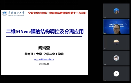 12月14日晚,青年教师协会举办的青年教师论坛第十三次活动于线上正常召开。本次论坛邀请国家自然科学基金优秀青年基金获得者、华南理工大学魏嫣莹研究员,学院年佩博士和高瑞丽博士作报告,学院80余名青年科研骨干和研究生参与了交流讨论。