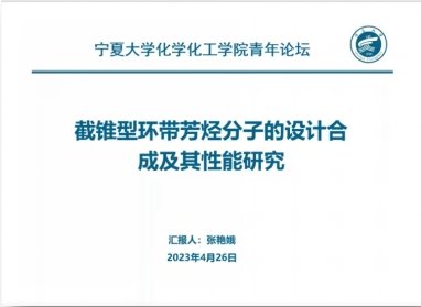张艳娥博士以“截锥型环带芳烃分子的设计合成与性能研究”为题作了报告,围绕具有扩展π结构、固有手性以及碳正离子型全共轭截锥型环带芳烃分子的设计合成做了介绍。并进一步阐述了该类分子的主客体识别性和光学特性,探讨了该类分子在光学材料等领域的应用前景。