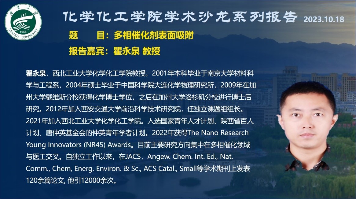2023年学术沙龙报告会在科技楼C219举行。国家青年人才计划、陕西省百人计划、唐仲英基金会的仲英青年学者计划,2022年The Nano Research Young Innovators (NR45) Awards获得者,西北工业大学瞿永泉教授做了题为“多相催化剂表面吸附”的报告。学院部分青年教师及研究生、本科生近50人参加了此次学术活动。报告会由污污漫画